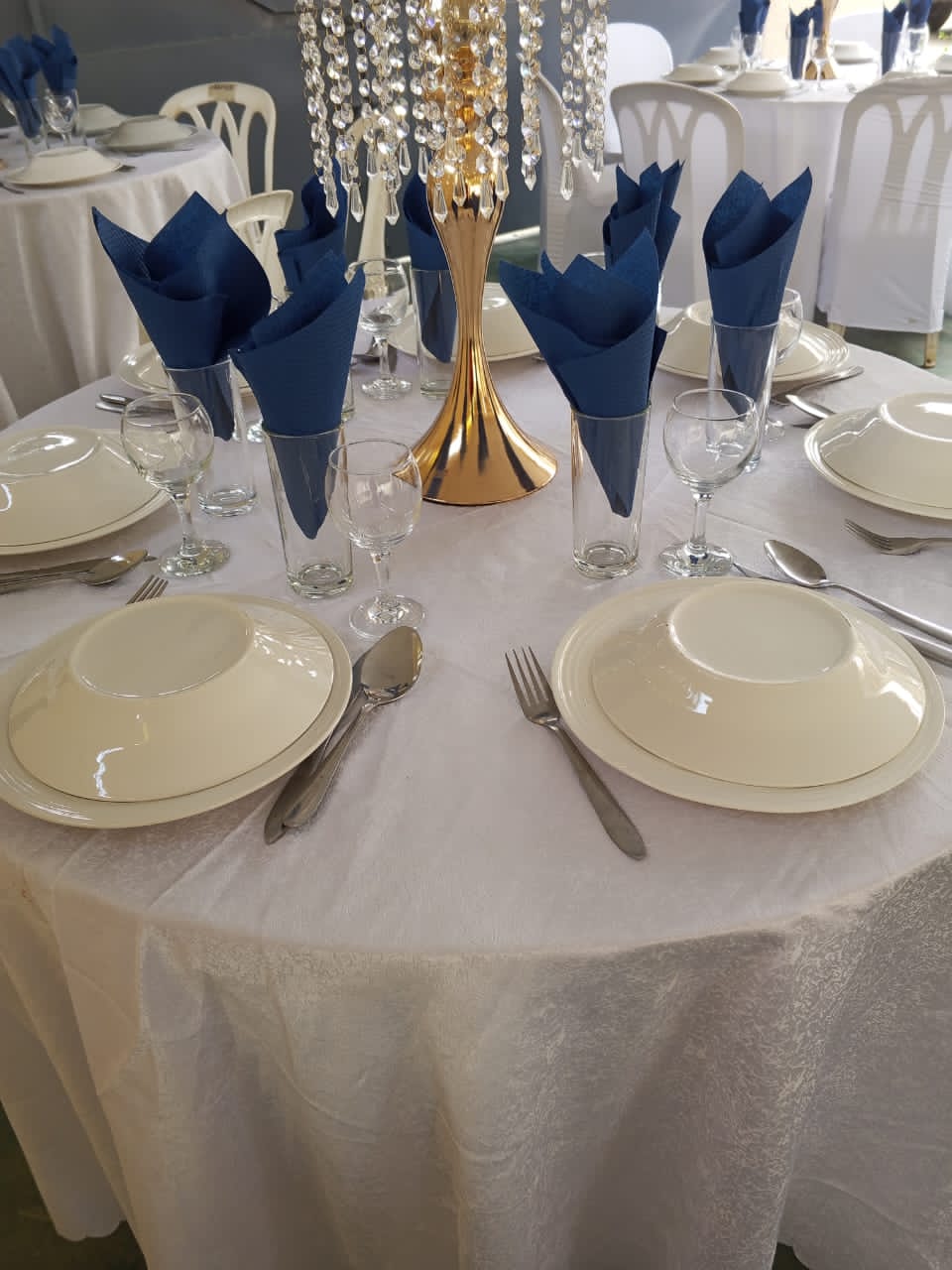 Chaises, bâches, vaisselle, toilettes publics, lumière, verres...